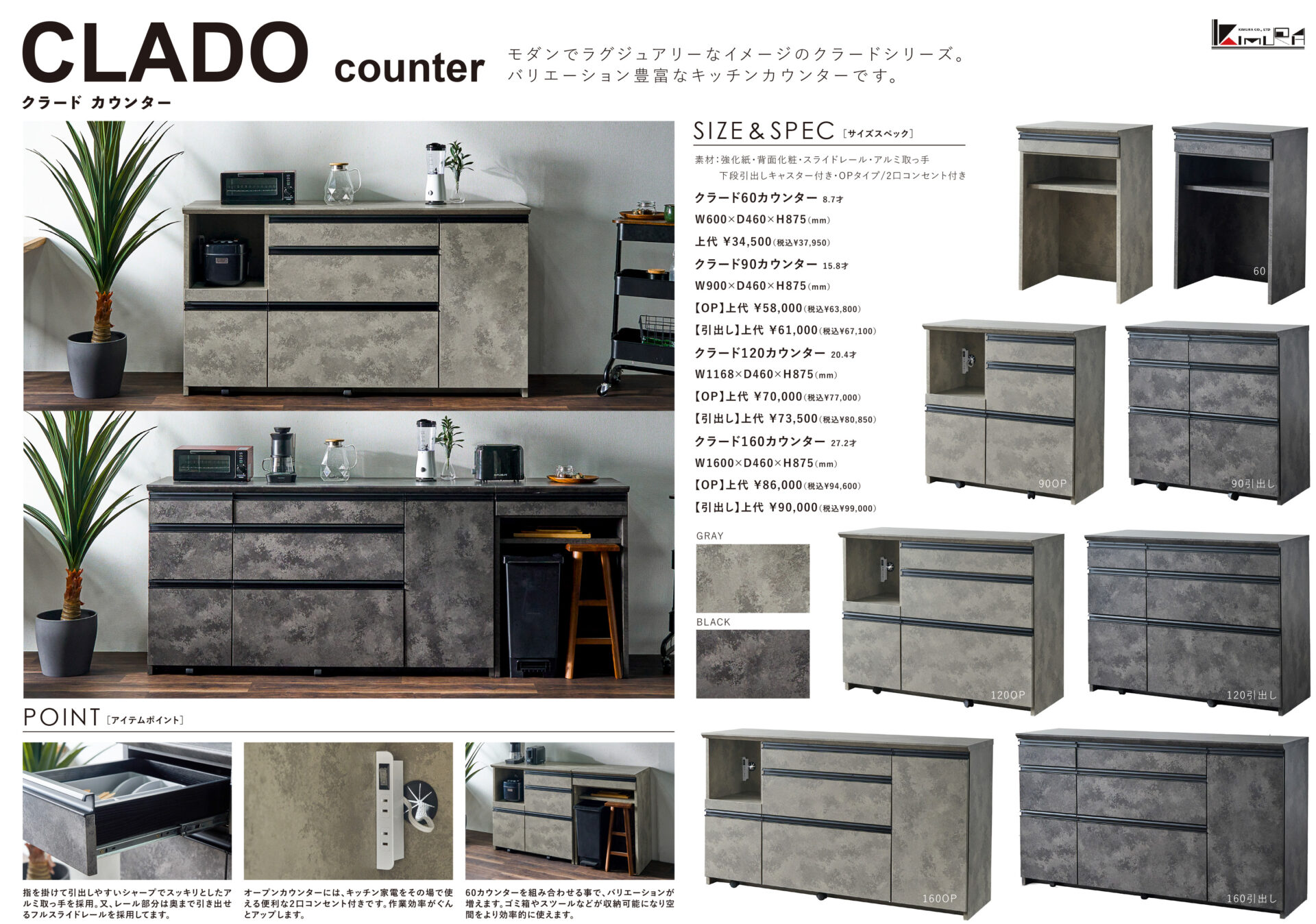モダンでラグジュアリーなイメージのクラードシリーズ。バリエーション豊富なキッチンカウンター。サイズの組合せでアナタ好みにカスタマイズ。